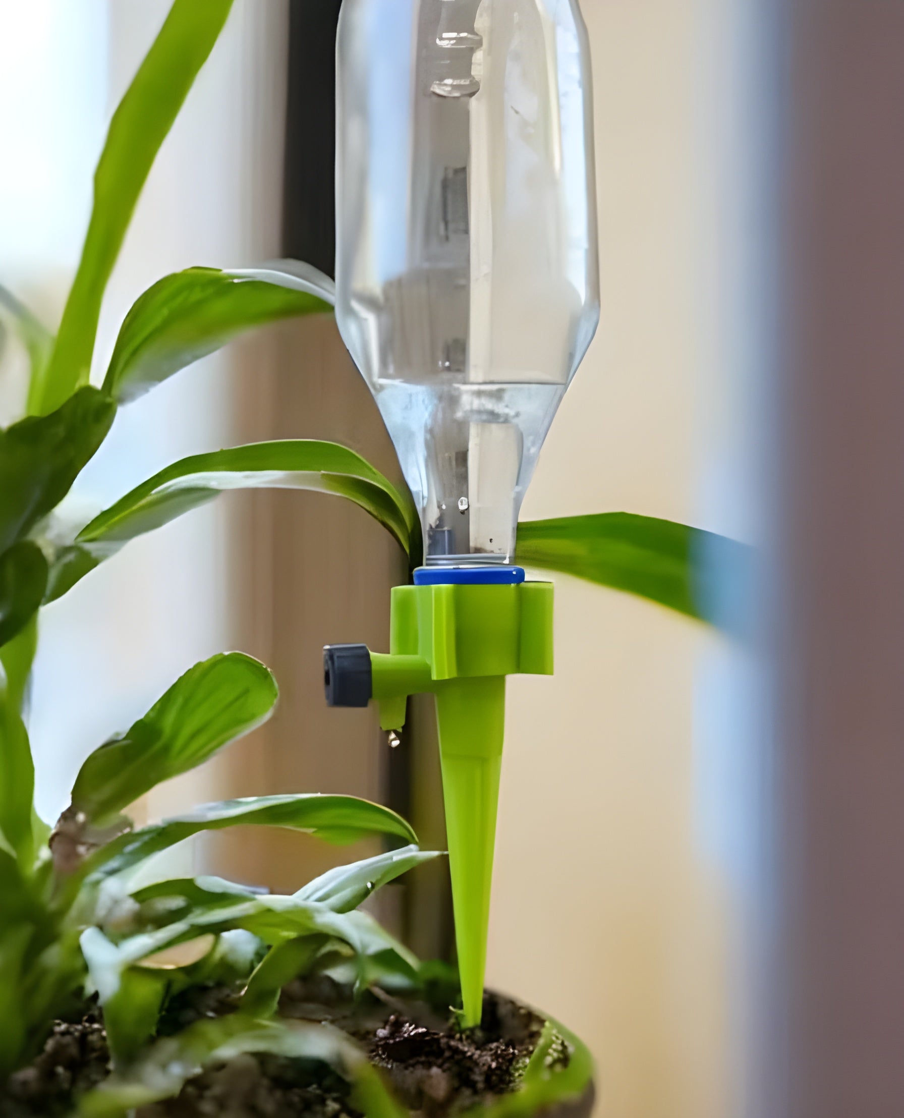 This auto-watering device slowly delivers water directly to the plant roots, keeping plants fresh without the need for daily watering.