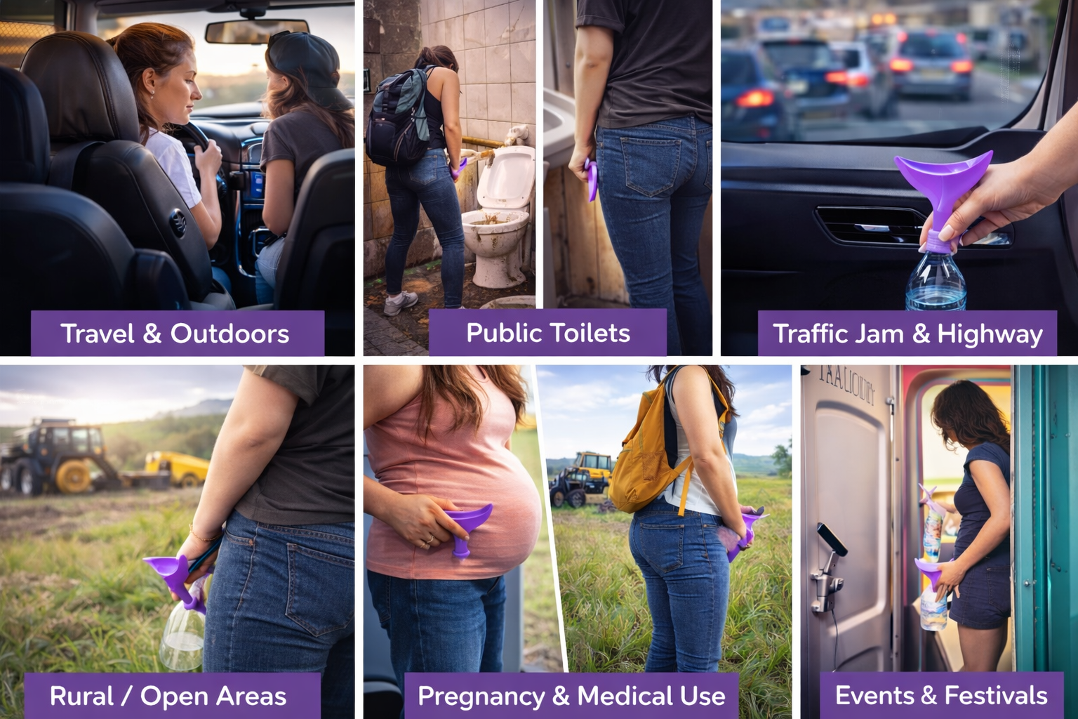 • Traffic jams and long highway drives (can be used with a bottle)